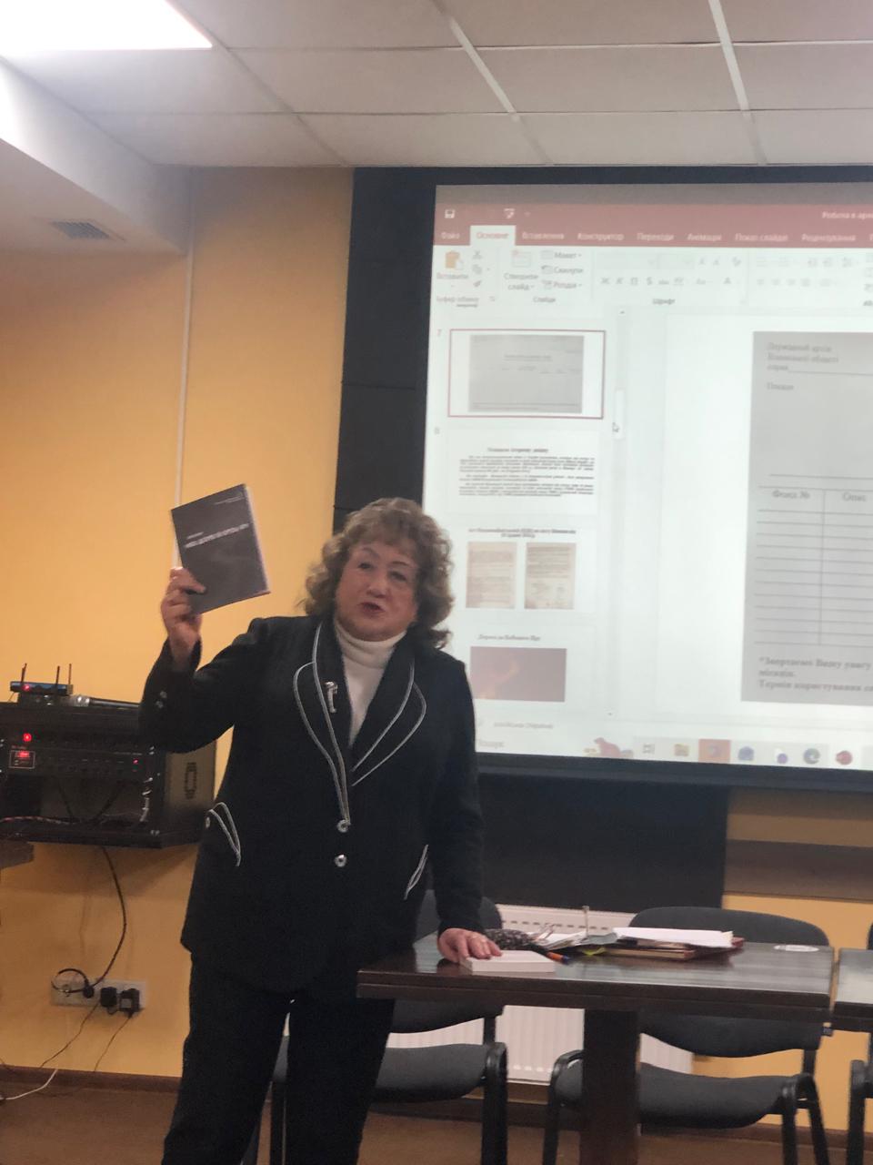 За програмою семінару відбувся «Архівний практикум», який вела заступниця директора Держархіву Вінницької області, кандидатка історичних наук, заслужена працівниця культури України Фаїна Винокурова, яка є дослідницею історії Голокосту. Вона надала відповіді на запитання, як працювати в архіві у пошуках джерел з історії Голокосту (1941–1944 рр.). Передусім вона зупинилася на системі науково-довідкових видань із проблематики, про яку йдеться, довіднику «Архіви окупації», який містить інформацію щодо всіх центральних та обласних архівів України, путівниках, зокрема на виданні «Державний архів Вінницької області. Путівник», інших путівниках, анотованих реєстрах описів фондів періоду німецько-румунської окупації. Вона відзначила, що зазначені видання, а також існуючі в архівах каталоги є ключем до інформації про Голокост, яка перебуває на архівному зберіганні.